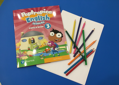 Красочный, современный курс издательства Pearson "Poptropica" включает в себя мультфильмы и игру для телефона.